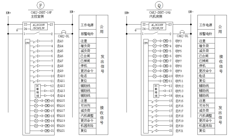 CAKJ-ZHXT-16F/Q 發(fā)電機(jī)指揮信號(hào)裝置是用于主控室與汽機(jī)房之間彼此傳送命令和機(jī)組運(yùn)行狀況的設(shè)備。一套完整的指揮系統(tǒng),應(yīng)在主控室的發(fā)電機(jī)控制盤(pán)上和汽機(jī)控制盤(pán)上各裝設(shè)一臺(tái)相應(yīng)發(fā)送和接受命令的指揮信號(hào)裝置。