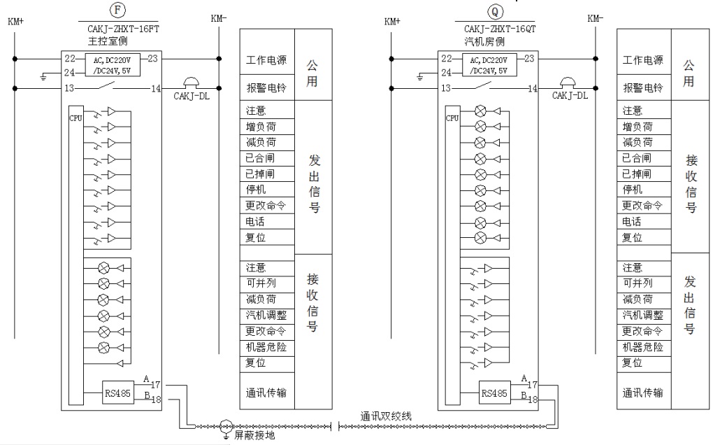 通訊連接方式接線圖(產(chǎn)品型號(hào)CAKJ-ZHXT-16FT,CAKJ-ZHXT-16QT)