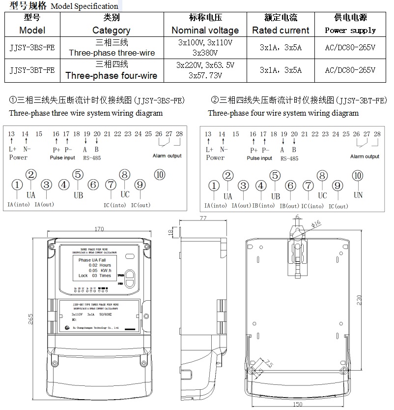 JJSY系列三相失壓斷流計(jì)時(shí)儀適用于電力三相三線、三相四線系統(tǒng),通過(guò)對(duì)電網(wǎng)電壓(PT)回路、電流(CT)回路進(jìn)行監(jiān)視,能準(zhǔn)確判斷電網(wǎng)運(yùn)行狀態(tài),并詳細(xì)記錄其處于故障期間的各種參數(shù),以便供電部門對(duì)電網(wǎng)進(jìn)行管理,追補(bǔ)人為或非人為的漏計(jì)電能。 全英文菜單