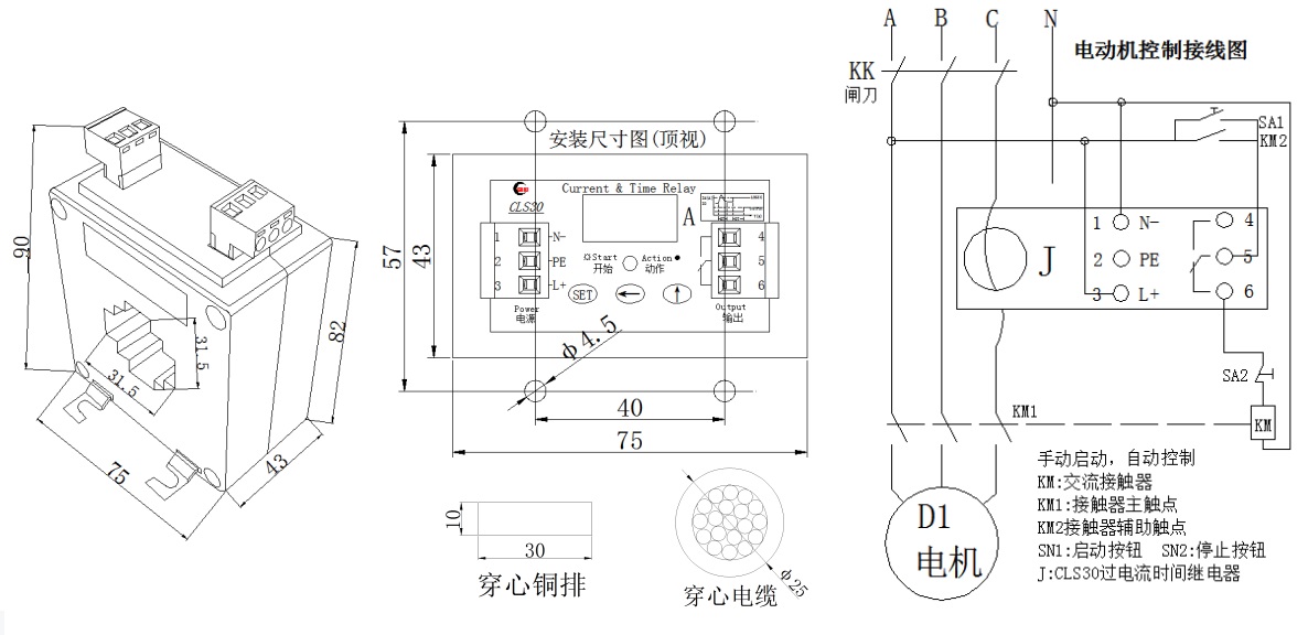 CLS30系列一體式過(guò)電流時(shí)間繼電器適用于發(fā)電廠(chǎng)、變電站用控保屏、高低壓開(kāi)關(guān)柜、電動(dòng)機(jī)、變壓器及各種測(cè)試設(shè)備,作為電流的精確測(cè)量,具備啟動(dòng)延時(shí)閉鎖、延時(shí)動(dòng)作、回差控制,數(shù)字直觀(guān)顯示,現(xiàn)場(chǎng)可編程等功能。電流穿心及控制一體式設(shè)計(jì),可省掉電流互感器,是一款一體式過(guò)電流控制保護(hù)等多功能繼電器。