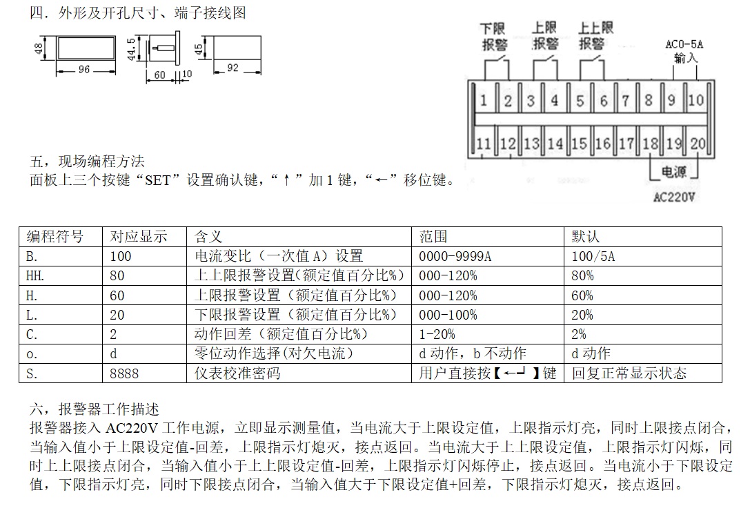 參數(shù):交流電流或電壓測量,上上限,上限,下限報警