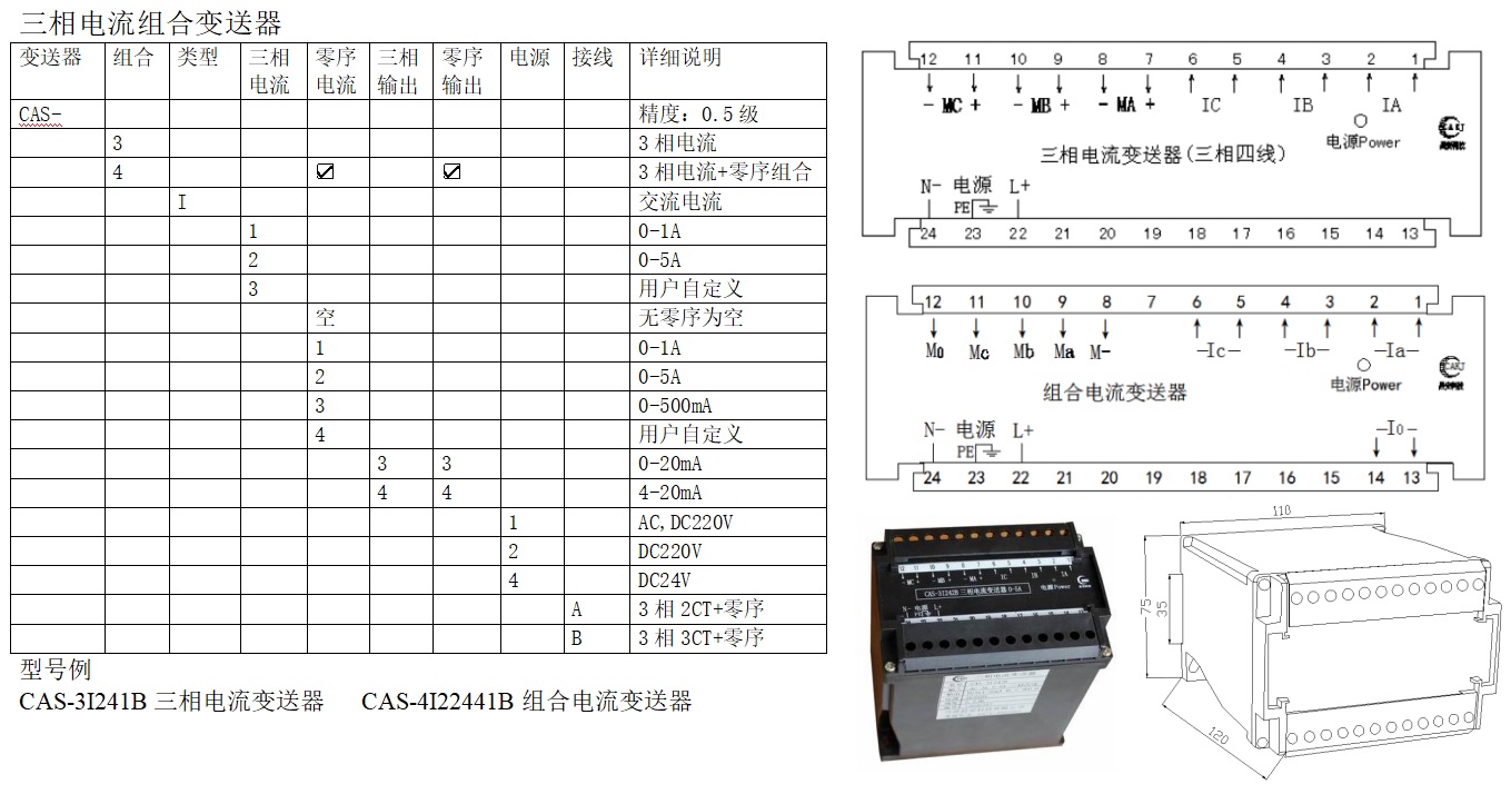 CAS系列電量變送器是將被測交直流電流、電壓等信號轉換成按線性比例輸出直流電流、電壓并隔離的設備,配以相應的指示儀表或裝置是電力系統(tǒng)、遠動裝置、自動化控制系統(tǒng)等可選擇的模擬量采集模塊。執(zhí)行標準GB/T13850.1-92