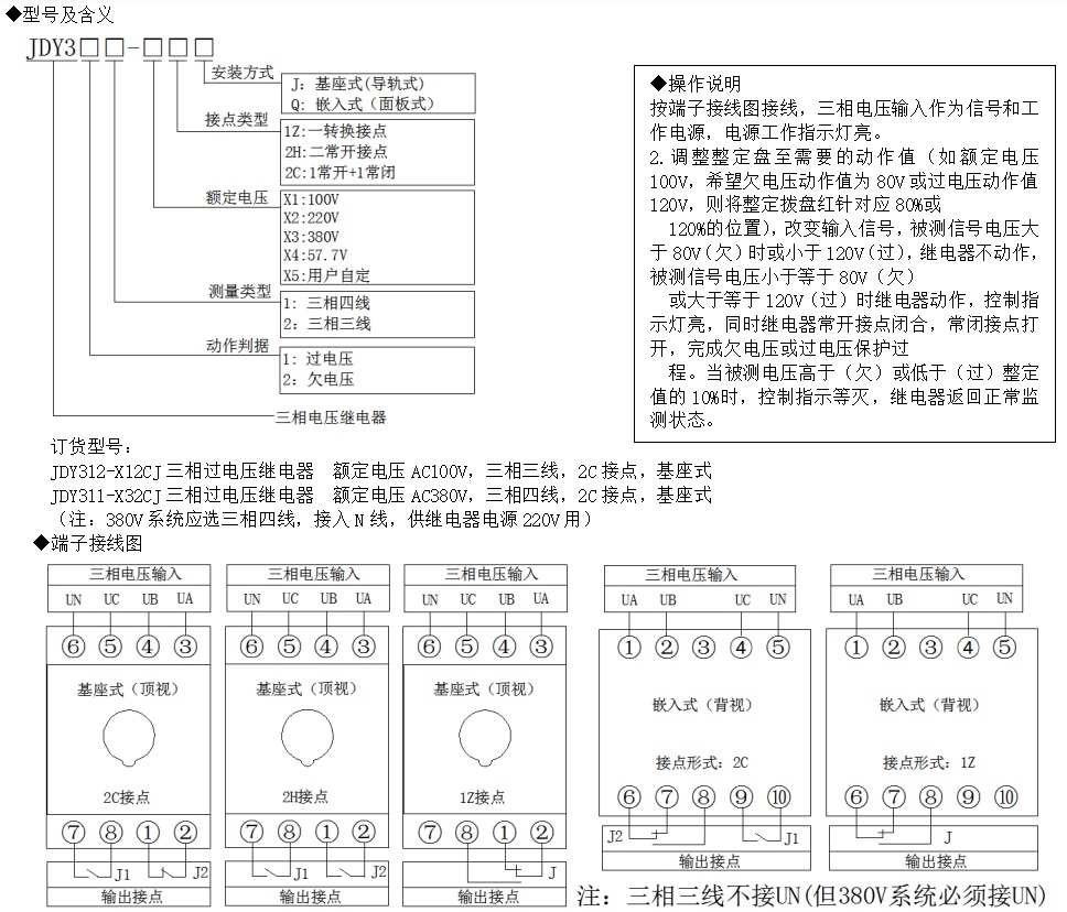 JDY300可調(diào)節(jié)三相電壓繼電器,適用于高壓35kv,10kv或低壓400v線路及用電設(shè)備,作為三相電壓檢測及控制設(shè)備。可調(diào)節(jié)范圍0~120%,調(diào)節(jié)及檢測精度高,是高低壓系統(tǒng)簡便可靠的電壓繼電保護(hù)。